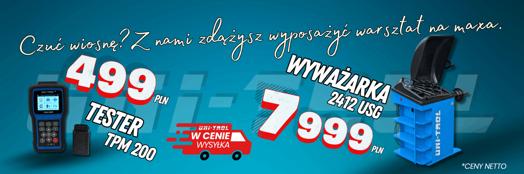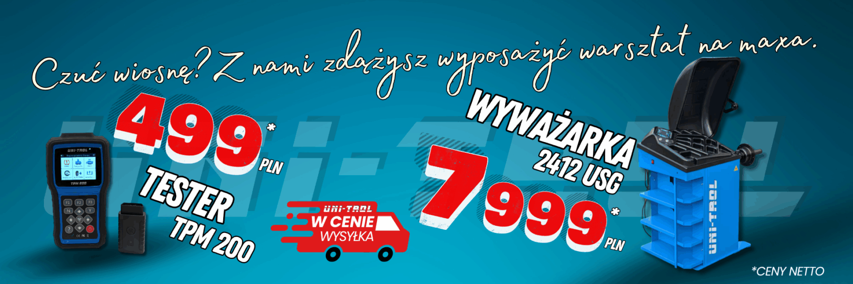 Witamy na stronach firmy UNI-TROL, która od 1988 roku specjalizuje się w produkcji urządzeń do serwisu ogumienia oraz wyposażenia warsztatów samochodowych. Na naszą bogatą i wszechstronną ofertę składają się między innymi wyważarki, montażownice, prostowarki do felg, a także generator azotu podnośniki i wulkanizatory oraz wiele więcej. Świadczymy również kompleksowe usługi z zakresu cięcia laserowego i obróbki metali. Nowoczesny sprzęt w połączeniu z wieloletnim doświadczeniem umożliwiają nam proponowanie usług i asortymentu, wyróżniających się znakomitą jakością. Naszym dodatkowym atutem jest także świetnie zorganizowana grupa serwisowa, która sprawnie i kompleksowo rozwiązuje zgłaszane problemy techniczne. UNI-TROL, przedsiębiorstwo godne zaufania, zachęca do współpracy.