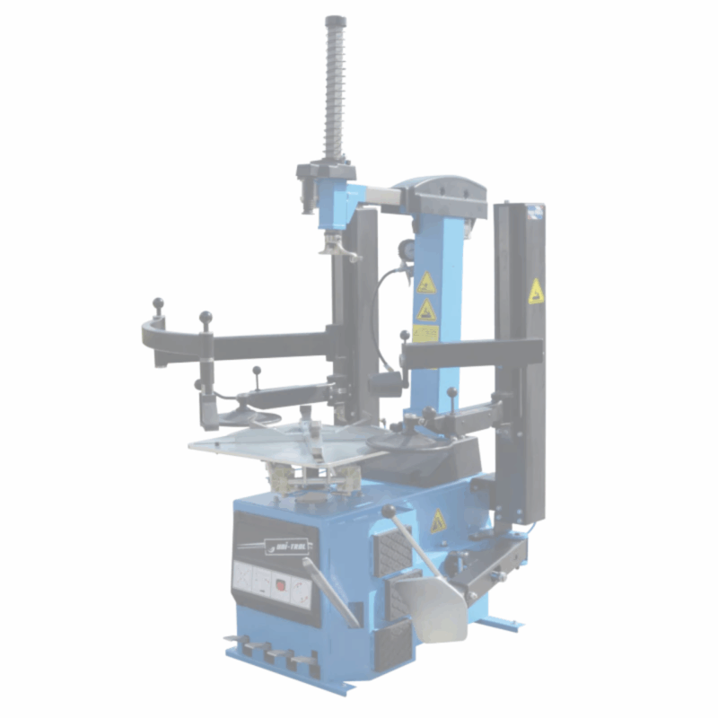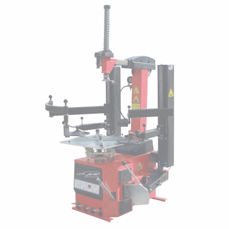 Automatic tyre-changer for car and van wheels including RUNFLAT tyres. The column and the arm move and blocked pneumatically. The robust construction and two independent pneumatic arms saves operator time and effort. The tyres and wheels are handled with little effort and with the highest accuracy without the risk of tyre or rim damage. It also enables handling of aluminum rim wheels without any damage of delicate rim surface. The table of two clamping ranges till 23 " or 26".