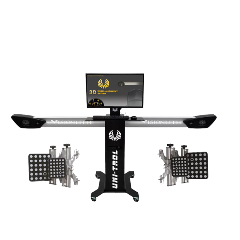 Urządzenie do pomiaru geometrii VISIONLITH PIT idealne dla aut osobowych i dostawczych do 3,5t. Uni-Trol Visionlith PIT to nowoczesne rozwiązanie oparte na kamerach wysokiej rozdzielczości w technologii 3D. Technologia ta gwarantuje szybki i dokładny pomiar geometrii pojazdu. Oferuje szereg procedur niedostępnych w urządzeniach w technologii podczerwieni (CCD). Visionlith PIT dostarczany jest na mobilnej platformie, pozwala to na swobodne przemieszczanie pomiędzy stanowiskami pomiarowymi a dzięki zastosowanej technologii 3D nie ma potrzeby kalibracji urządzenia.
